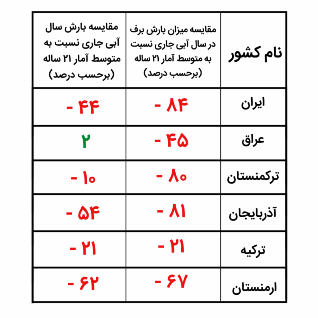 از سوی دیگر، مقایسه وضعیت بارش در کشورهای مختلف طی ۲۱ سال نشان میدهد: