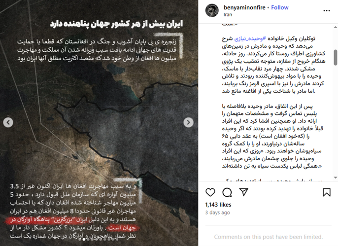 یک صفحه اینستاگرامی در پستی مدعی شده است که به دلیل حضور مهاجران افغانستانی، ایران بیشترین تعداد پناهنده را در جهان دارد.